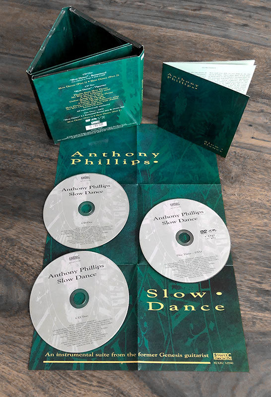 On Anthony Phillips' discharge: The recordings were difficult and technically ambitious at the time. A borrowed, semi-professional Fostex 16-track machine did bring a little creative freedom, but he recorded [most of] the album without clicktrack or other synchronisation settings, so he had to record each part of each instrument one after the other in the intended order. When everything was almost finished, co-producer Simon Heyworth couldn't help suggesting real strings (which doesn't surprise me at all). Of course, this required more tracks, so a second 16-track machine was connected and the orchestra was recorded in London's CBS studios. But more tracks required more hands for mixing (there was no automation in Ants home studio). Fortunately, he kept finding people to help him. Also financially, because since the bankruptcy of his US label Passport he had no record contract and therefore no advance payments. Luckily, he finally signed to Virgin Records with the finished album, who also wanted to re-release his back catalogue (and for the first time on CD). Slow Dance was the first to be released - and became a success - especially to his fans.