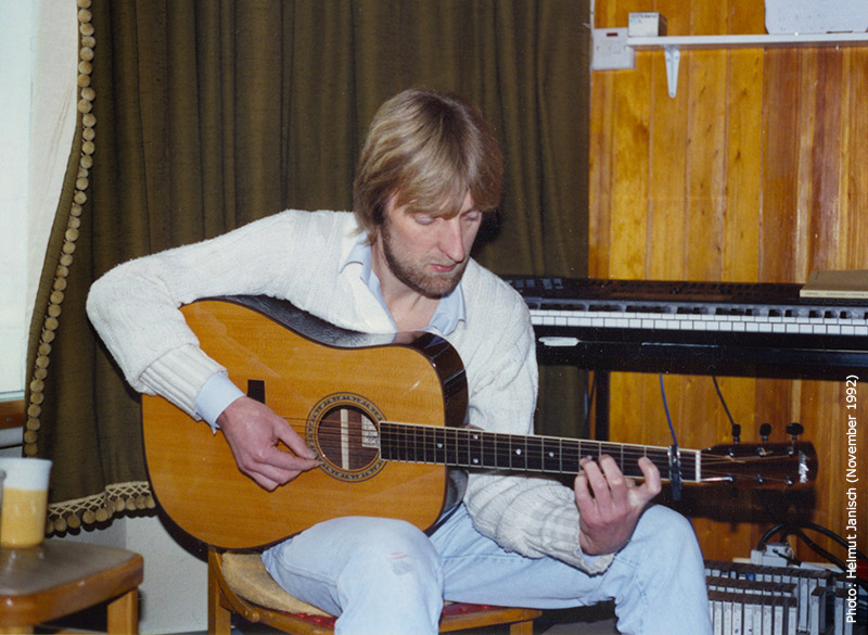 Most of the live versions on this album are a bit shorter than the originals (Jaunty Roads is the exception). In many cases the pieces are played a bit faster, and while that may be due to the artist’s nerves, some tracks actually benefit from it (Reaper comes to mind). It may also be due to the simpler arrangements: Playing solo, Ant had to rewrite or reduce all the arrangements so they can be performed on one guitar or one piano. Reaper is also a good example for abbreviations – a passage that is played eight times in the original is repeated only five times here – and for little mistakes. There are hardly any major mistakes on the album (but spot 5:22 on Let Us Now Make Love). Flamingo is the only piece with radical cuts. The modified repetition is dropped right from the beginning, which makes the piece only half as long.