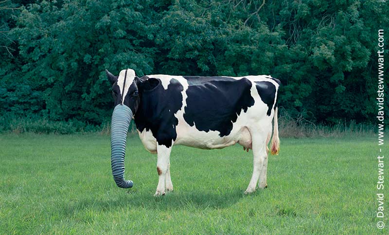 David: So that's the story of it. And actually, what happened when Chris Hughes started playing round with the image he thought it better to turn the background into more of a painting than a photograph, so he photoshopped it and made it look as though it had been painted. So the only sharp bit of the image is the cow. Then he came up with the idea for the savannah colour, the orange-y kind of tone. He fiddled with it, and we talked about it a lot and ended up with that.