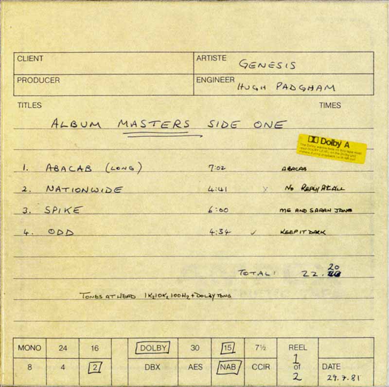 One dominant characteristic on Abacab is the drum sound. Phil took the sound he developed with Hugh Padgham on Peter Gabriel's third album, used on the Padgham-produced Abacab and refined on Face Value, again with Padgham and brought it to the next level. „I wanted this strong, loud drumsound“, explains Padgham on previous Genesis documentaries, and continues: „Albums from the 70s often sound as if they had been recorded in a room with carpets on the walls, but it is hard if you stand next to a drummer because it gets really loud. That's what I wanted to transport onto the LP.“ Padgham was a young man at the time, but his idea of a sound really left a mark on the way Genesis would sound. There was a huge difference in this regard between Duke and Abacab.