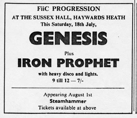 Things picked up speed when the following advertisement by Tony Stratton Smith appeared in Melody Maker on 1 August 1970: