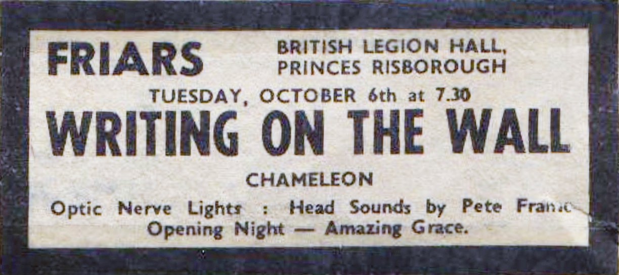 To understand why there may have been some confusion here, let's take a brief look at the Friars. Dave Stopps tells us about the beginning of the Friars: „On 2 June 1969 Robin, Terry Harms, Adrian Roach, John Fowler, Jerry Slater and myself presented the very first Friars Aylesbury gig at the New Friarage Hall with a post-psychedelic band called Mandrake Paddle Steamer and folk singer Mike Cooper. Two hundred people showed up and we lost £35, which was a huge sum in those days. The next week we presented The pil+ Pretty Things and the third week Free, and things started to pick up. Every Monday for the next year we presented the best bands we could get, including Black Sabbath, Edgar Broughton, Mott the Hoople, Blodwyn Pig, King Crimson, Van Der Graaf Generator and Hawkwind, to name but a few. We also did a few 'foreign' gigs in Dunstable, Bedford, High Wycombe and even one in Princes Risborough.“ [10]