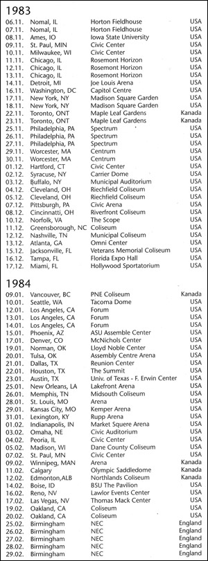 Mike Rutherford explained that there were very few venues in England that could accommodate the installation of the gigantic lightshow. The musicians held it against the mainland Europeans that they had not received their previous albums and the 1981 tour in particular with full enthusiasm. Genesis had toured Europe almost every year; they had become something of a fixture, and so they apparently decided to make themselves a bit rarer in order not to reach the point of public non-interest. This decision was rather regrettable because the shows they offered was indeed special.