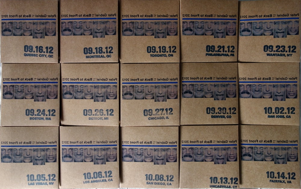 Peter Gabriel has brought out another Encore Series from his Back To Front tour 2012. Soundboard recordings from all shows (except one) are officially available from the website themusic.com, which makes them something like official bootlegs. Each show can be bought individually as a 2CD set. You can also buy a North American Collectors' CD Box in a cardboard box and a North American Deluxe CD Road Case. To top even that, you can get all shows and cases with microphone-shaped USB sticks instead of CDs.