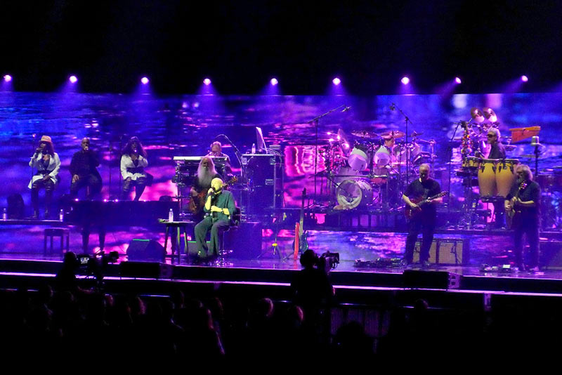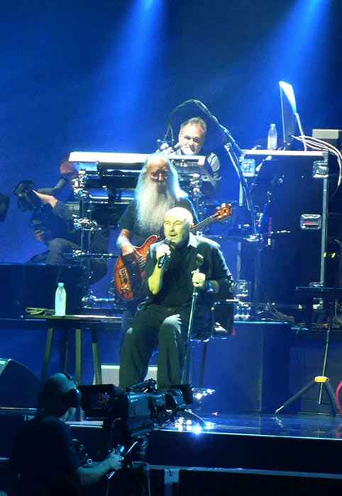 There is the familiar trio of singers, him with Arnold McCuller and Amy Keys. Phil sits between them and looks strangely tall. There is a degree of (intentional?) comedy in it, and it does not seem weird because it seems funny. It is a different story with Sussudio. I could not say why, but Phil looks out of place sitting down. He taps his left foot faster than for any of the previous songs, and Sussudio begins in its usual colourful way with confetti and streamers, but it somehow does not really fit into this show. Phil's vocals seem not the best here, for the first time this evening, and I had the feeling he has a problem with his timing. It all seems a bit forced, like the song people want to hear, and Phil not wanting to let them down. The audience does not mind. As usual, the band bows and leave the stage after Sussudio.