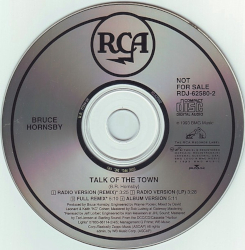 Talk Of The Town (Bruce Hornsby) (5:11)Talk Of The Town (Edit/Radio Version) * (Bruce Hornsby) (3:28)Talk Of The Town (Full Remix) ** (Bruce Hornsby) (5:10)Talk Of The Town (Remix Radio Version) ** (Bruce Hornsby) (3:25)Long Tall Cool One (Bruce Hornsby) (4:59)China Doll (Bruce Hornsby) (5:16)Fields Of Grey (Bruce Hornsby) (4:52)Fields Of Grey (Single Edit) *** (Bruce Hornsby) (4:25)Recording date: 1992? Recording location: Bruce Hornsby's House/Williamsburg Produced by: Bruce Hornsby **Remixed by: Jeff Lorber Performed by: Bruce Hornsby feat. Phil Collins (Backing Vocals, Bongos, Tambourine), Branford Marsalis, Pat Metheny a.o. First official release/Best available source: 6th April 1993 - Bruce Hornsby Harbor Lights (EU CD//RCA 07863 66114 2) *First official release/Best available source: 1993 - Bruce Hornsby Talk Of The Town (EU CDS//RCA 74321 15189 2) **First official release/Best available source: 1993 - Bruce Hornsby Talk Of The Town (US Promo CD//RCA RDJ-62580-2) ***First official release/Best available source: 1993 - Bruce Hornsby Fields Of Grey (EU CDS//RCA 74321 16227 2) |