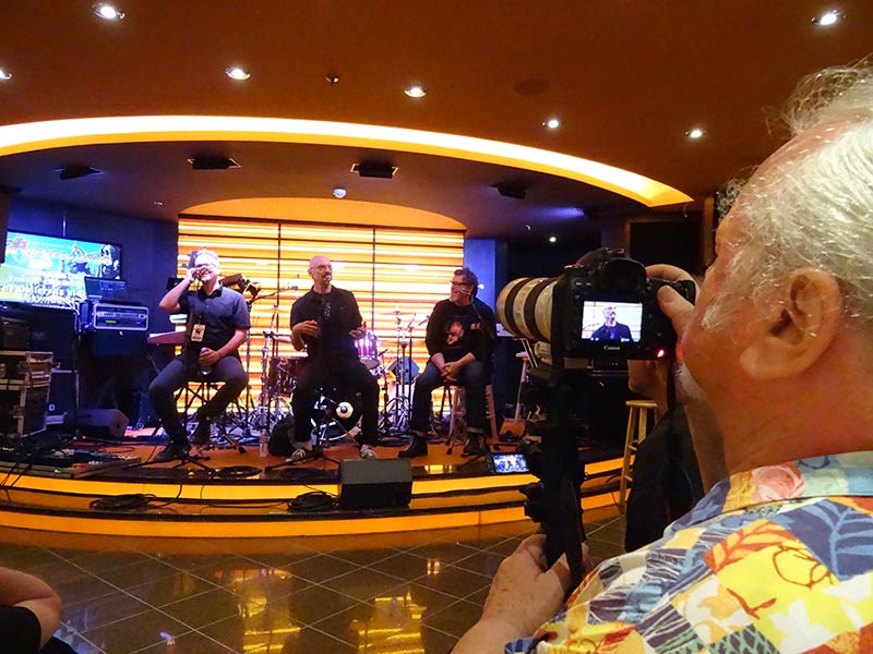 There were more highlights from the Genesis perspective. During his storyteller appearance, Hackett answered loads of questions by John Kirkman, the organiser of the cruise, and the audience, and played his usual Horizons and the beginning of Blood On The Rooftops on his acoustic guitar. Another interesting event was the appearance of the legendary Genesis photographer Armando Gallo. In a screen presentation he explictly introduced his nearly finished 'I Know What I Like'-App, and one could get an impression of all its features. Above all there's a lot of browsing and interactivity and loads of previously unpublished pictures for which the space in his book was too limited. For legal reasons, he is not allowed to integrate the music (there are links to iTunes for those who own the records on that platform), still some of Genesis-related persons have put music to his disposal exclusively, among them Anthony Phillips.