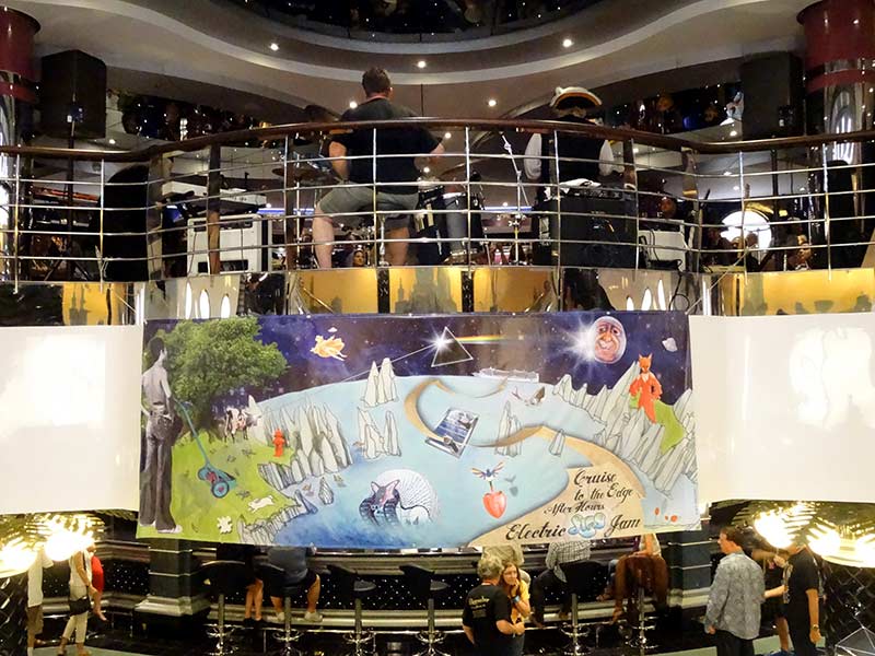The concerts mostly lasted to short after midnight, but that wasn't the end of the day. What followed was the After Prog Jam in front of a small bar near the atrium. For that purpose some passengers, who were musicians themselves, via facebook arranged to play some songs. Everybody more or less knew his part, but before midnight they never played together. Accordingly the quality of the performances varied, as the skills of the musicians did.