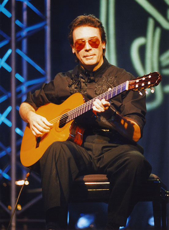 He doesn't speak much during the almost two hours of this concert. He expresses himself in his focused, tense (though never nervous), exuberantly rapturous facial expressions, but most of all in the nimble movement of his fingers whose apparent effortlessness reveals that the guitar's neck and body are their little realm; all the power pours into the musical performance.