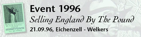 It is September 21, 1996 Eichenzell-Welkers, community center. But it all began in September 1994. At that time, we printed a report by Serge Morissette about the Canadian Genesis tribute band The Musical Box. Serge offered to bring rare video and slides from the Selling England By The Pound tour as well as a complete concert by The Musical Box on video to Germany and to report on some interesting details from 1973 and 1974. However, this could only happen if the club covered Serge's expenses. So we had to find enough people who were willing to pay around DM 30 for this event.