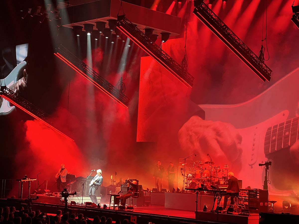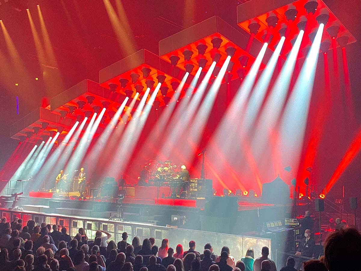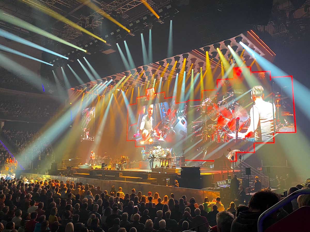Yes, hello, it’s 2007 again! Genesis start just like they did 14/15 years ago – is that apt? Well, even less than in 2007 there was a new album to market in 2021/22. But the fanfare-like beginning of a live concert with the majestic opening chords of Behind The Lines is just too good to not use it again now. Even if the statement in 2007 was at least partly different (look here: Phil Collins was first and foremost the drummer of this band), in 2021/22 you can still point to the band’s strong instrumental tradition with this opener and also underline the fact that they were not always pure hit single producers. Besides, as part of the audience, you can settle into the concert experience, so to speak. The light show also sets the first accents; the high quality of the stage presentation is underlined right at the beginning.