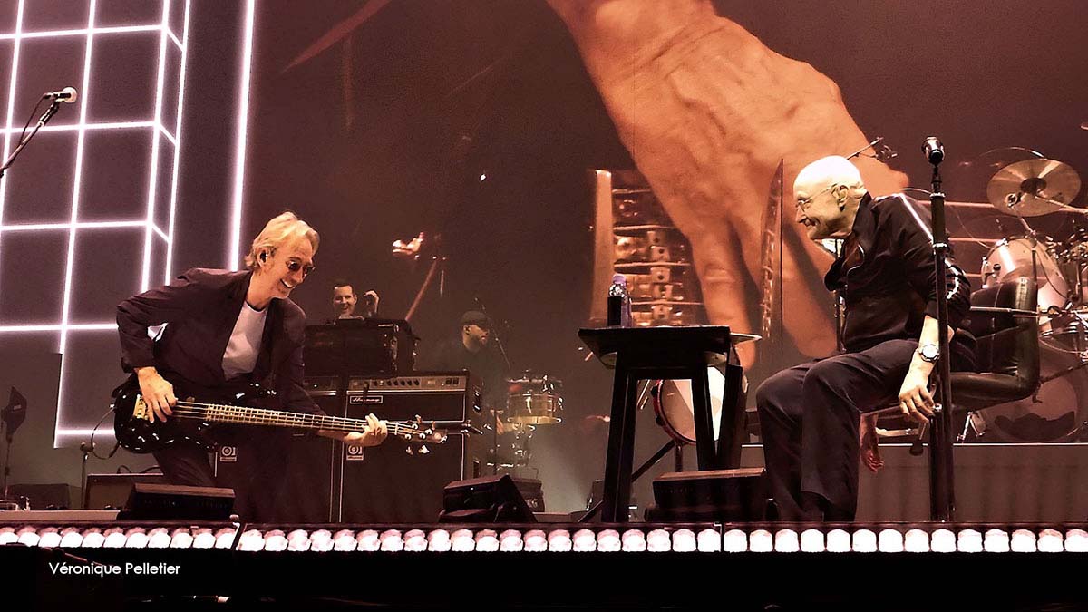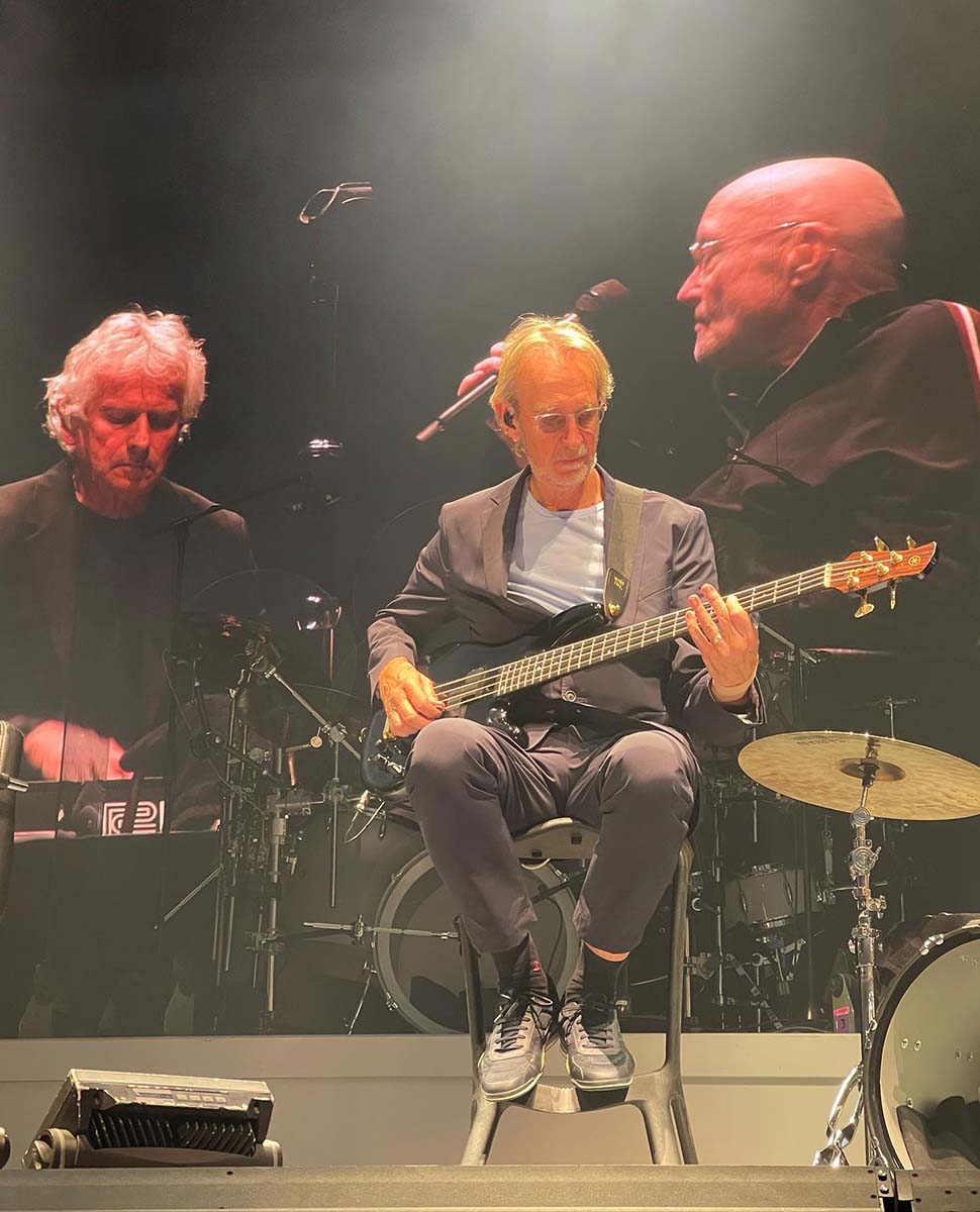 The introduction of the musicians follows, introduced by the new faces who are up there on stage, first the background singers and this new drummer ;o) . Nic Collins already receives frenetic applause, the audience appreciates his unbelievable performance in the light of his young years; there is probably also a kind of family bonus. Daryl Stuermer, the loyal soul, is also celebrated, until the applause for the three actual band members continues to grow into a big neverending cheer.
