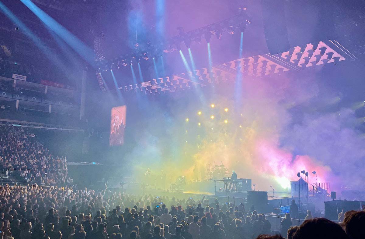 In general, it is noticeable that at several points in the concert there is simply a reliance on the effect of the mere lights. This seems to me like a reference to the great Vari-Lites sceneries that were used so magnificently on the tours of the 80s, before video screens made their big entrance. So in a way, I think for the first time here, there is also a kind of self-quotation in the lightshow, which again emphasises the character of this tour as a farewell to the fans and as a last show of work.