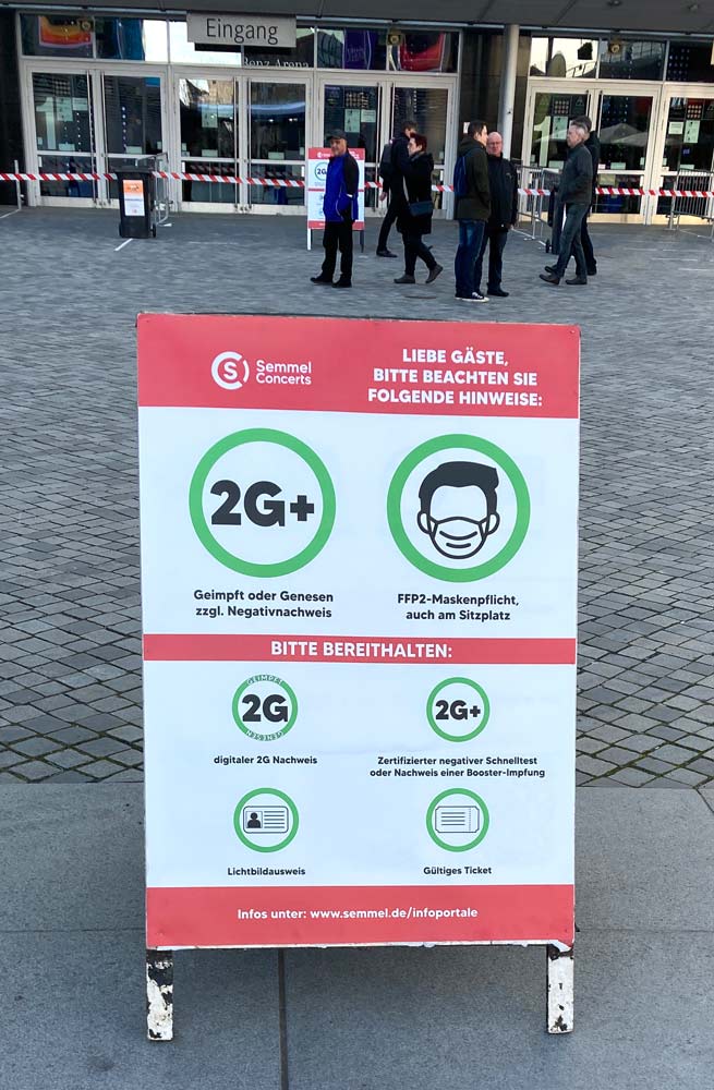 Personally, I tightened my personal testing regime in the weeks before the concerts and tried to keep the risk of infection as low as possible in my private life (which was quite difficult, as my partner also works in education). I then booked trains and accommodation at fairly short notice. For the opening concert in Berlin, I stayed at the Deutsche Bahn InterCity Hotel at Ostbahnhof; for the two Hanover shows, I stayed with my sister in Braunschweig and in a hotel at Hanover’s main station. For the Amsterdam show, Alex had chosen a low-budget hotel a few minutes’ walk from the ZiggoDome. For the London trip, Alex and I still had the postponed flights with British Airways and a deal based on pure goodwill with our accommodation within walking distance of the O2 Arena, because we had also booked in October at quite short notice and therefore without a cancellation option.