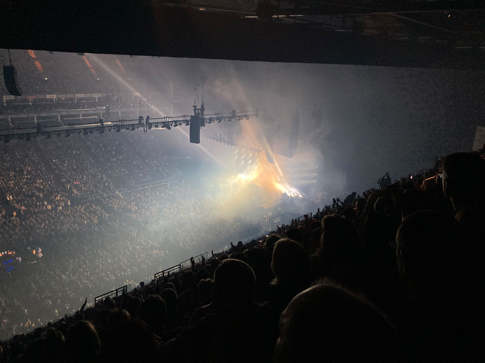 Our cheap hotel was less than a five-minute walk from the ZiggoDome, so we queued up about an hour before admission. Equipped with our regular paper standing-room tickets from Ticketmaster.nl (€110 per ticket plus shipping) and the official Dutch negative proof by email, we started to panic slightly because Sophie’s smartphone did not have enough memory to