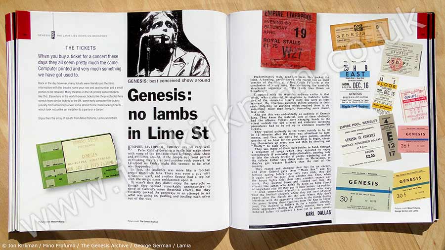 “This new book takes a very detailed look at this particular period in the history of Genesis [i.e. the time in which Genesis wrote and toured with The Lamb]. Through the bringing together of many rare photographs, memorabilia, recollections from people in the audience, band members, designers, photographers and crew the book brings this largely undocumented tour to light in impressive style.”