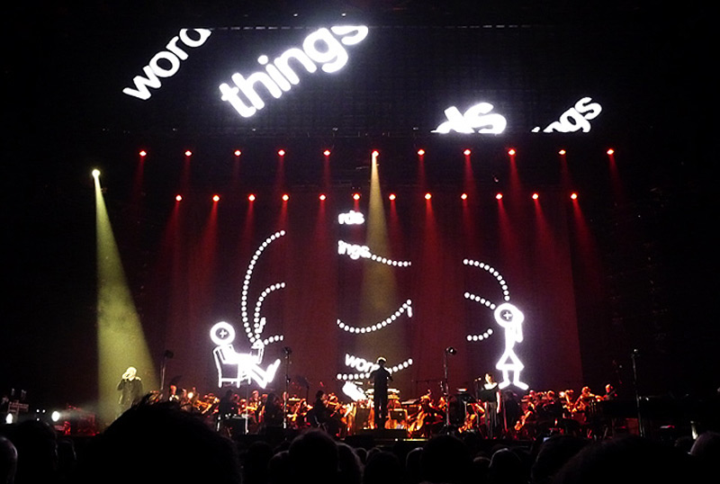 The beginning of the concert was unobtrusive, “Heroes” and The Boy In The Bubble did not have any spectacular visuals. This changed with Mirrorball where the visual side illustrates Elbow’s lovesong very fittingly. Gabriel sings the number different and stronger than on the album. The “lift off love” bit is so strong that it towers over the orchestra – a touching moment.