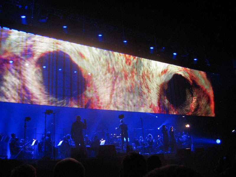 The second half of the show “scratches” Gabriel’s own songs. The orchestral arrangements are more or less unusual, the visuals are less formal, and Gabriel aims more at exciting the audience.