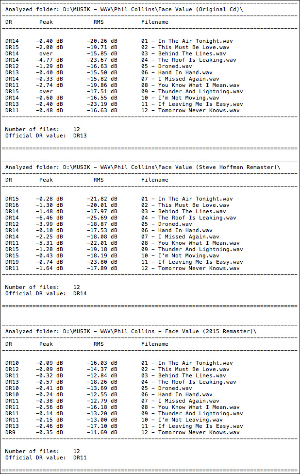 For friends of data and technical aspects, we have measured all three versions of this album (original CD, Hoffman remaster for 24 karat gold CD; 2016 remaster). Just click on the image to see the results.