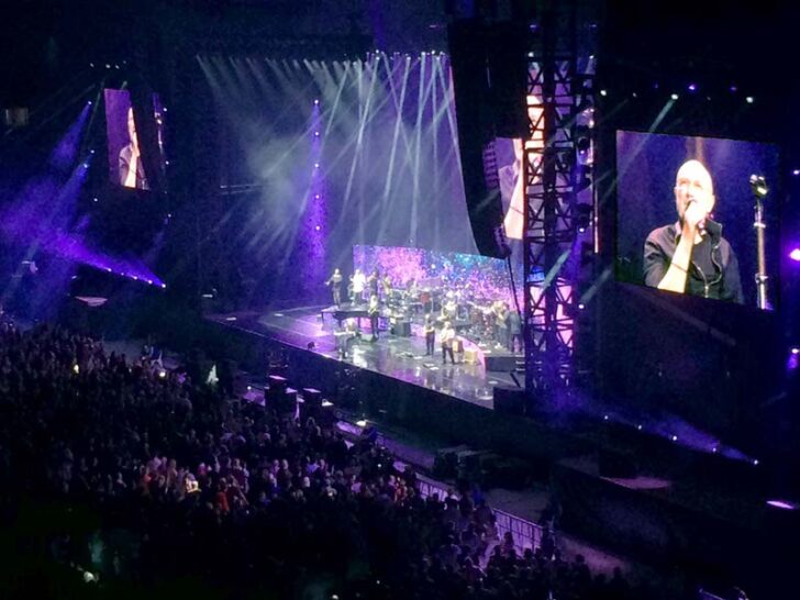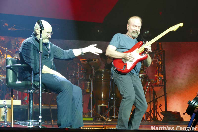 The atmospheric highlight of the show is the next song, also from Face Value: In The Air Tonight is celebrated with a slow intro of epic length, justly so, because this song (almost 40 years old, too) is a stroke of genius. Phil stands for this song. A small gesture with immense effect, it underlines the meaning of this song as the “signature song” in Phil Collins’ career. While Phil used to seem a bit lost in the final third of the song looking for the vocal climax since he does not sit at the drums anymore he now appears to have found a way to sing through the song. There are, however, a few moments when it looks as if Brad Cole’s vocoder vocals and Nic’s drumming needed to steer the old man in the right direction. Most people in the audience won’t notice but if you have the countless live versions from various tours in your ear you know what I mean. Still, In The Air Tonight remains the high point of the show for most people, even though Phil cannot play the drums himself anymore.