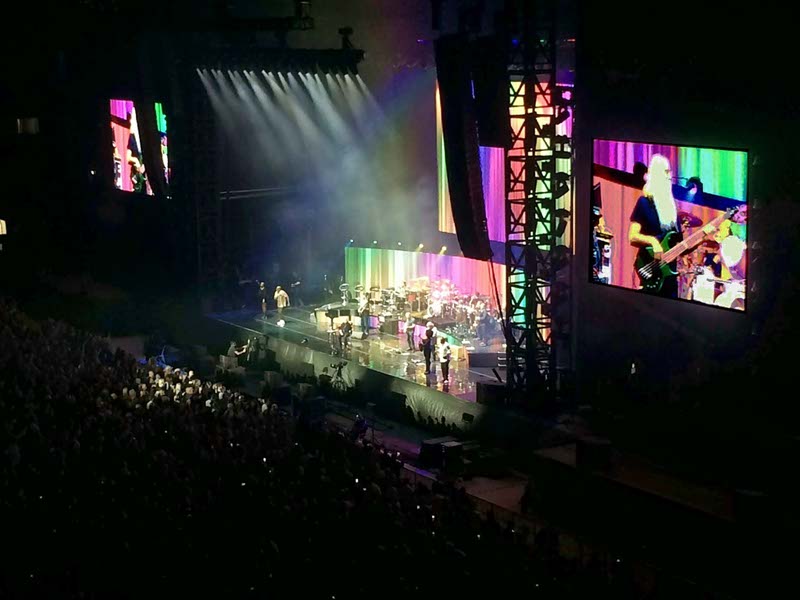 I Missed Again and Hang In Long Enough mark the change of atmosphere in the set much earlier than in 2017. Phil’s voice seems more at ease than in the beginning of the tour. He keeps singing notes he would avoid or leave to the backing vocals before.