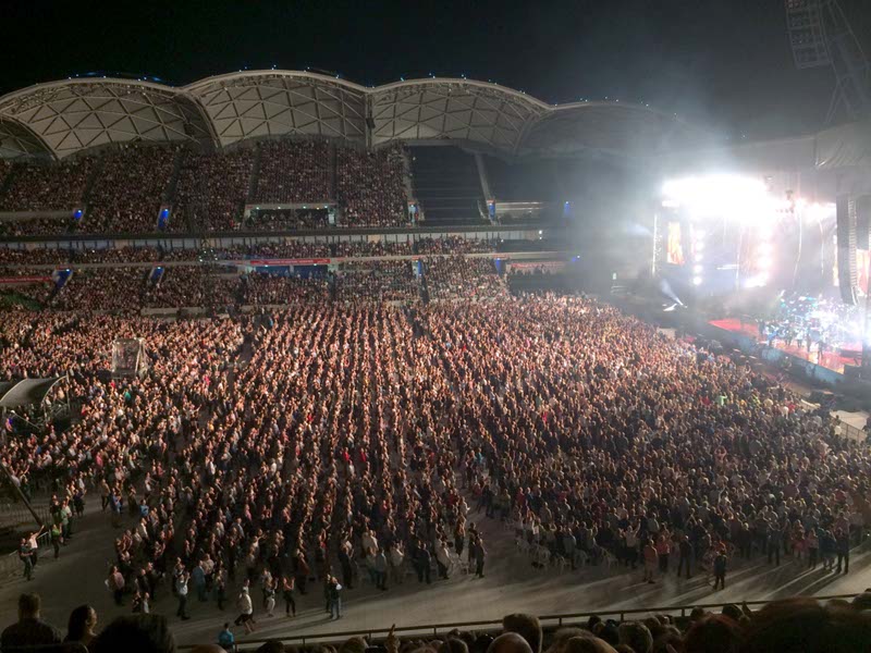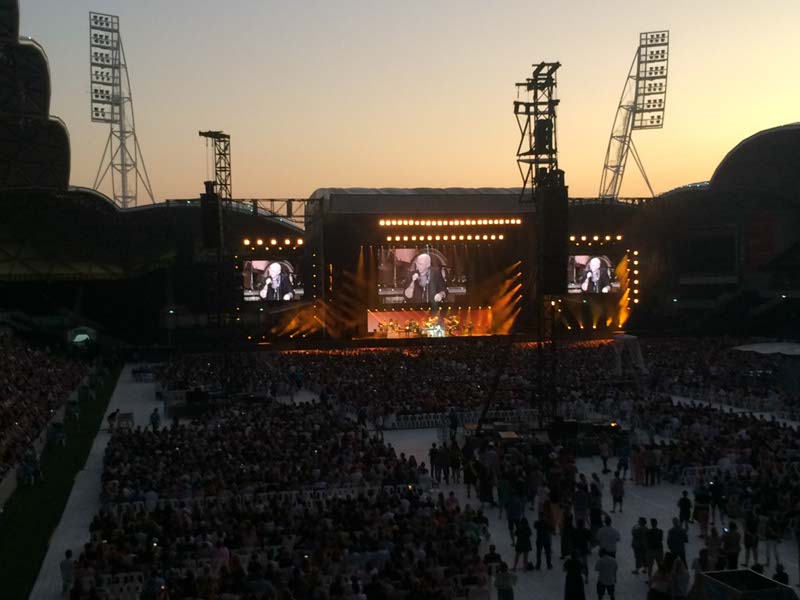 After Sussudio and a couple of bows Phil and the band leave the stage amid rapturous applause. The stage is cleared of confetti, and then they return and play the only, wonderful encore: Take Me Home is not just Phil’s but also my favourite song of his, and the lighting crew do a wonderful job. While Phil got the lines mixed up on the first night, it was perfect on the second… I had not believed that I would really get to experience this moment: My favourite artist plays my favourite song as the encore of a wonderful concert I attend with good old friends on a fine summer evening on the other side of the Earth. The audience choir of 30,000 is all the more impressive when the lights are shone on them and everybody can look around.