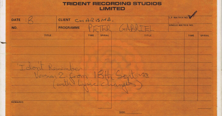 Yesterday, another version of I don’t Remember (from September 1978) was added in Peter Gabriel’s Full Moon Club on Bandcamp.