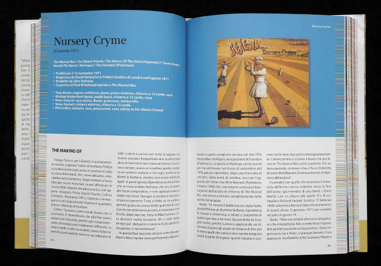 Gli Anni Prog (The Progressive Years). For the writing of this 240-page-work, Giammetti, known as the founder of Italy’s fan association Dusk and author of Genesis-related publications such as Musical Box – Le canzoni dei Genesis dalla A alla Z (2011), interviewed one by one the members of the group and re-listened with them the first six albums published from 1969 to 1974, which each constitute one of a total of six chapters.
