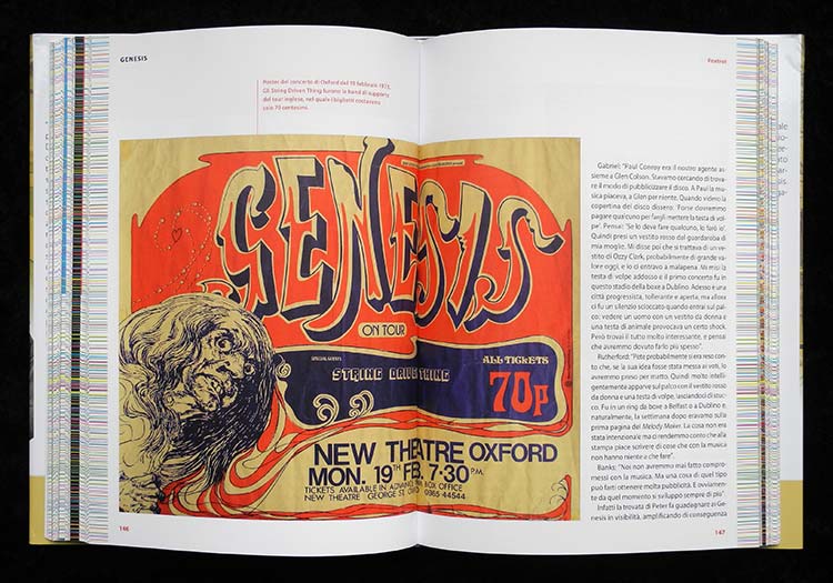 Each chapter consists of two parts: The first one focusing on the album itself, the second one on live performances featuring the respective album. Almost every page comes up with rare photographs, concert posters and vinyl labels, many of which have never been published before. A particularly interesting part of the “Album” section of each chapter of the book is the “Songs” subchapter, in which each tune on the album is commented and remembered by the group’s members themselves, giving a concise “behind the scenes” impression of the story behind each song. The “Cover” section which follows is quite short, but informative (From Genesis To Revelation was placed among religious records when first released!).
