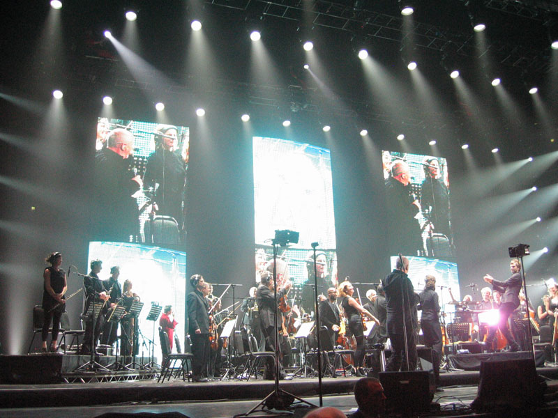 The second half of the show “scratches” Gabriel’s own songs. The orchestral arrangements are more or less unusual, the visuals are less formal, and Gabriel aims more at exciting the audience.