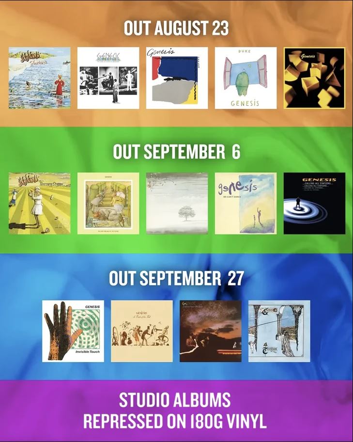 Since Genesis sold the rights to their songs, the albums have been increasingly out of print. About six months ago, the albums (from Trespassonwards) were therefore re-released on CD (digisleeves). And now the same albums are also being re-released on vinyl.