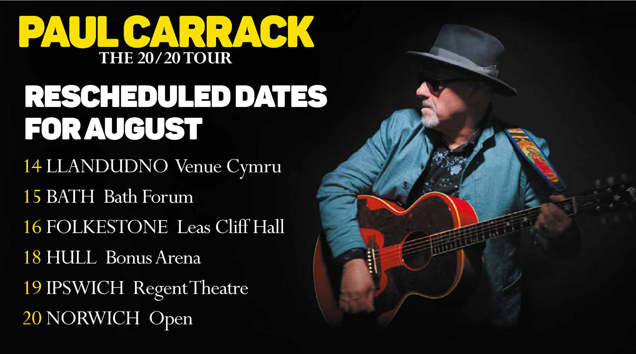 Paul Carrack has been touring with his The 20/20 toursince January and now the worldwide corona pandemic has also affected his touring plan. The remaining shows from his tour have been rescheduled to August (see image). Full list of his 2020 tour dates can be found here.