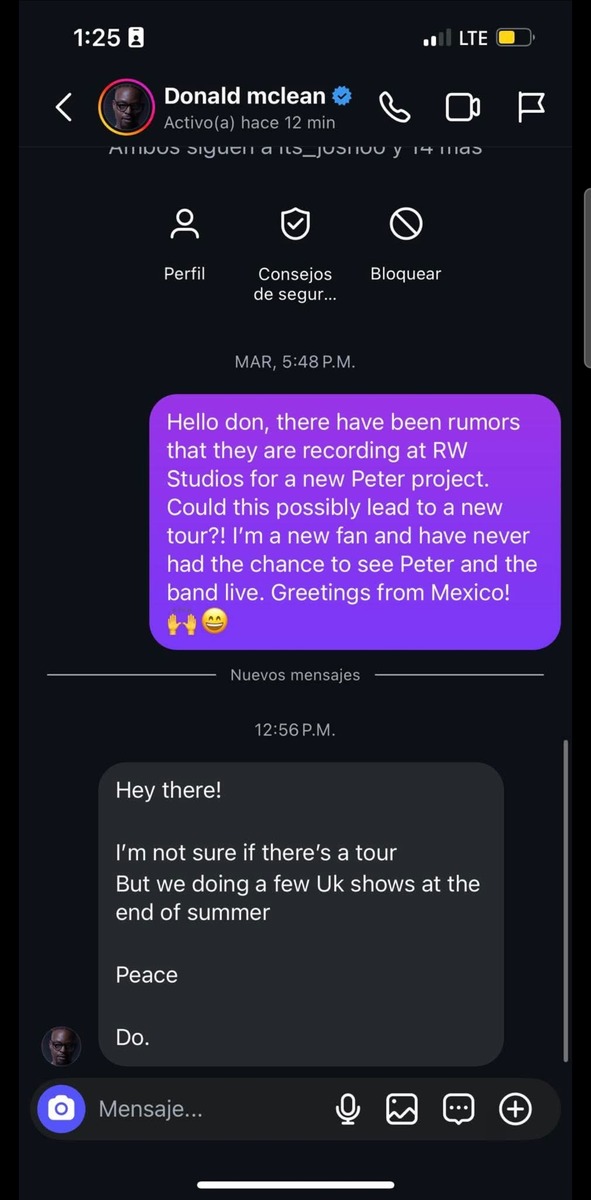 According to a conversation between Don E (keyboardist in Peter Gabriel’s band) and a fan on Instagram, Peter Gabriel shows in the late summer are planned. Being asked about a possible tour, Don E replied: “I’m not sure if there’s a tour, but we are doing a few UK shows at the end of summer”.