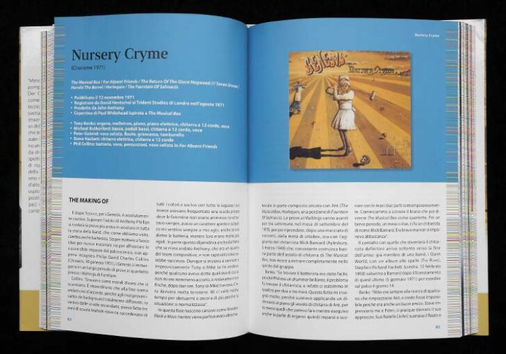Gli Anni Prog (The Progressive Years). For the writing of this 240-page-work, Giammetti, known as the founder of Italy’s fan association Dusk and author of Genesis-related publications such as Musical Box – Le canzoni dei Genesis dalla A alla Z (2011), interviewed one by one the members of the group and re-listened with them the first six albums published from 1969 to 1974, which each constitute one of a total of six chapters.